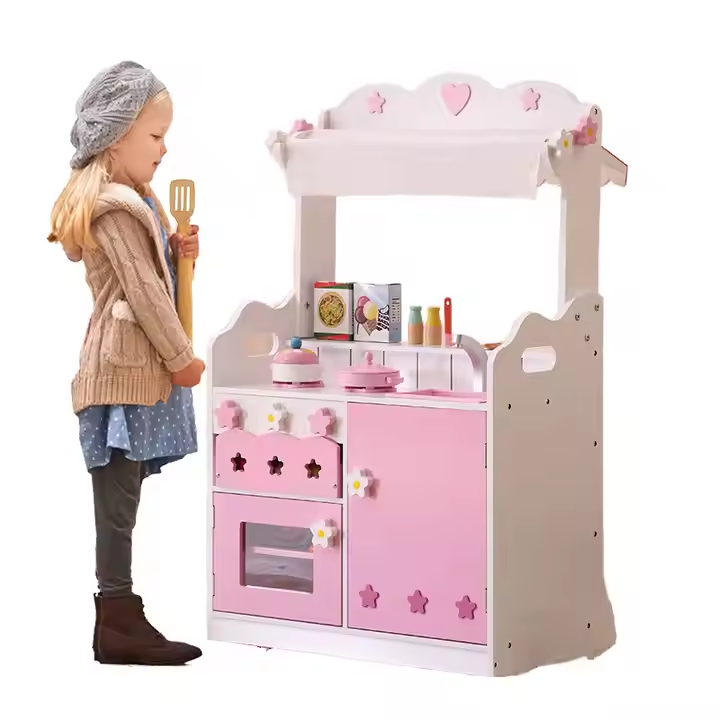 Mainan dapur dua sisi, bersaiz pada 42.5*60*97cm, mempunyai butiran yang kaya dan ruang yang cukup untuk memenuhi keperluan simulasi memasak kanak -kanak.