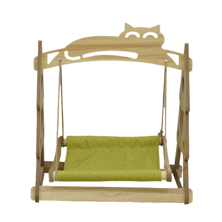 Buaian kucing kayu dengan struktur segi tiga yang kukuh, penggunaan yang stabil, tidak goncang, selamat digunakan.